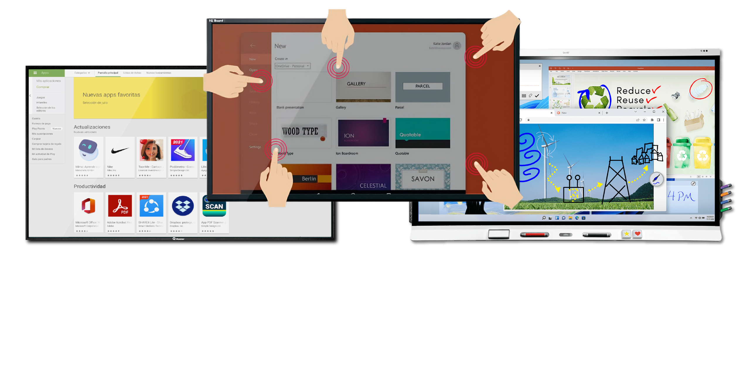 Nuestras pantallas interactivas te brindan una experiencia táctil sin igual, permitiéndote colaborar en tiempo real y presentar tus ideas de una manera impresionante.