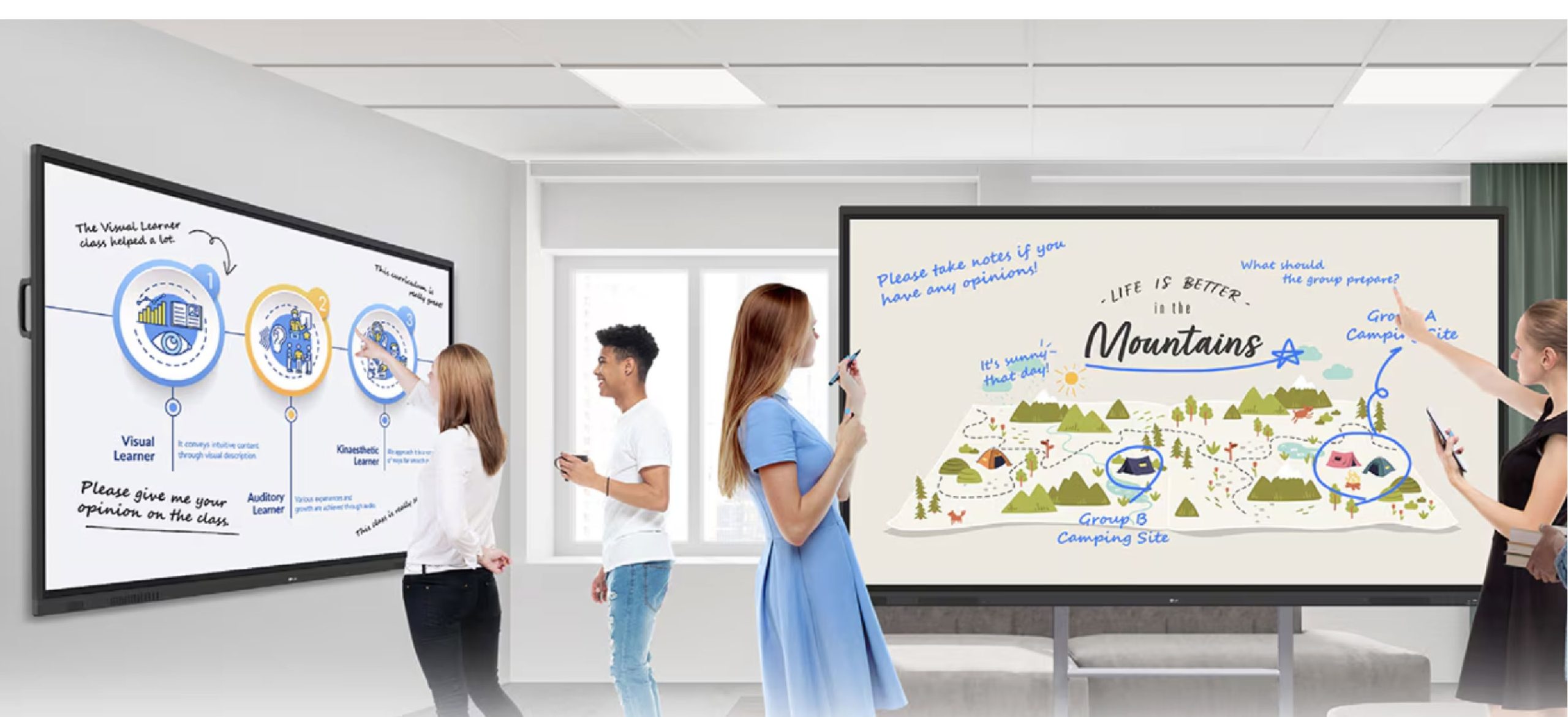 Sus pantallas están diseñadas para ofrecer una experiencia ágil, intuitiva y colaborativa, adaptándose a cualquier entorno profesional o educativo: con tecnología de alta calidad, escritura fluida y conectividad total, convierten cada espacio en un entorno más dinámico, productivo e inteligente