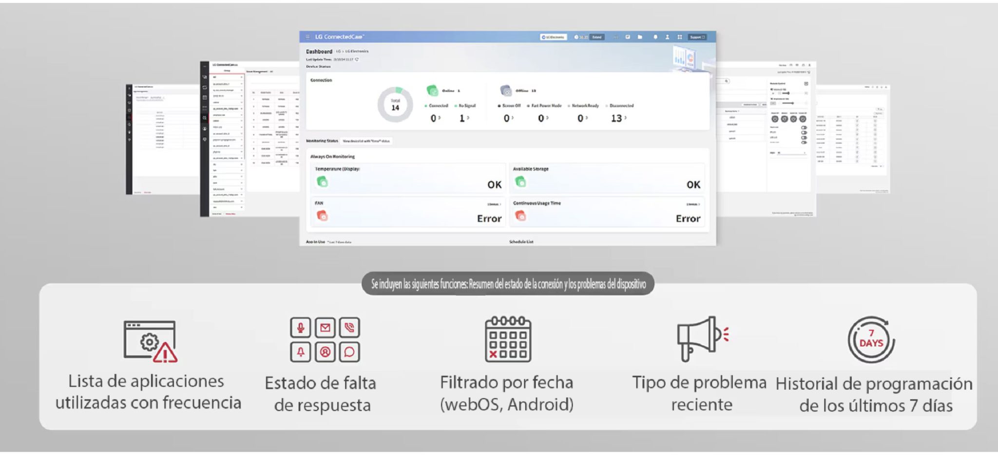 Solución en la nube que permite a los administradores de TI supervisar, programar y controlar las pizarras digitales sin necesidad de estar físicamente en cada aula, Los dashboards de ConnectedCare permiten monitorear múltiples dispositivos a la vez, optimizando la gestión y ahorrando tiempo